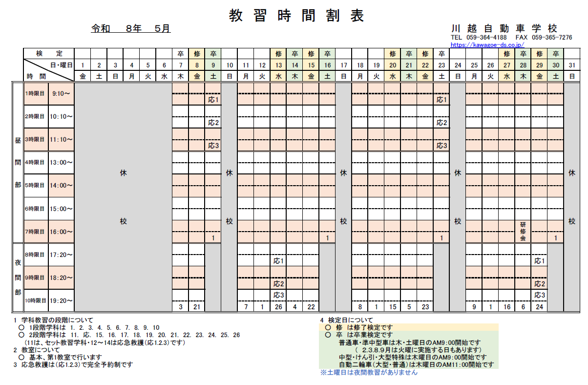 2026年5月の時間割ができました
