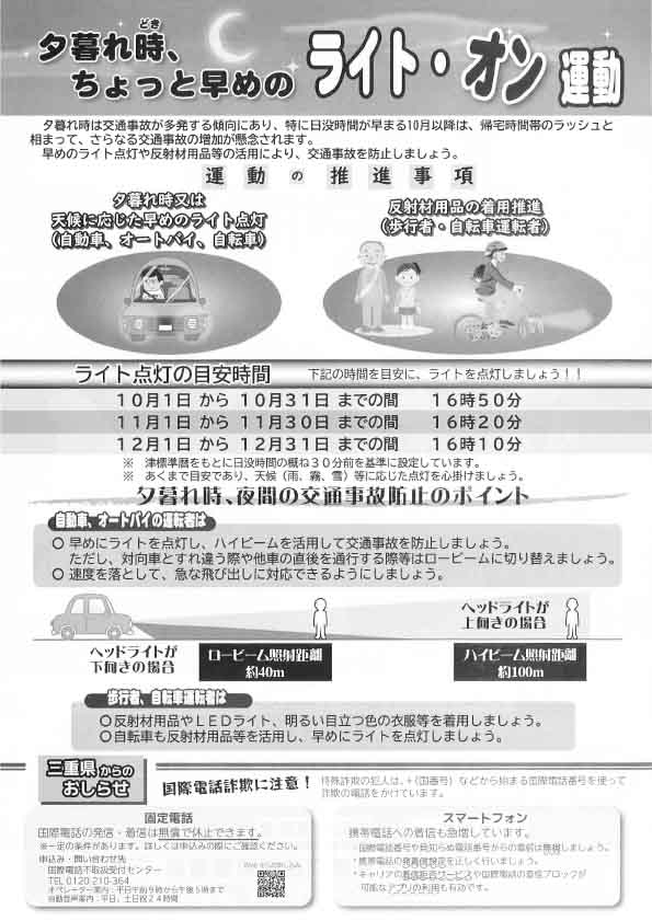 夕暮れ時、ちょっと早めのライト・オン運動 10/1(水)~12/31(水)